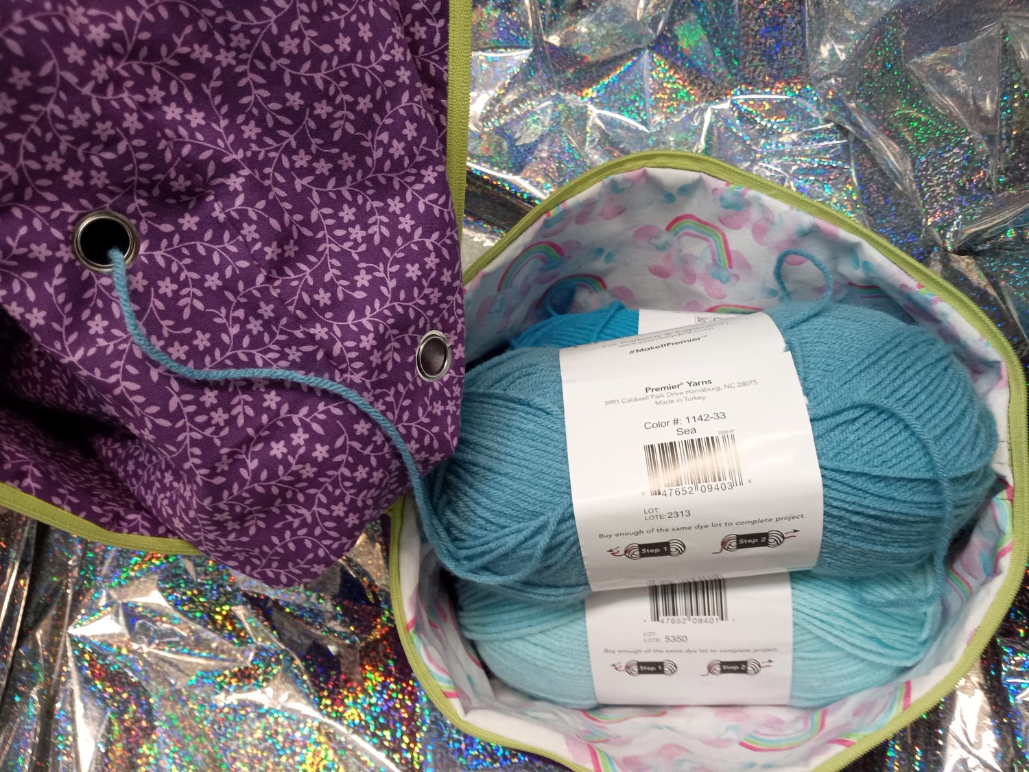 working on your projects. It has a bottom bag that stores your yarn and a top